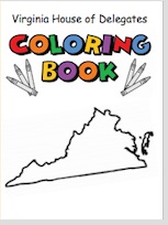The Virginia House of Delegates Coloring Book is designed for kindergarten through 3rd-grade students who are being introduced to Virginia studies. The coloring book includes Virginia history, emblems and symbols, and Virginia-born Presidents. A resource page that lists the Virginia Standards of Learning covered in the book is also included.